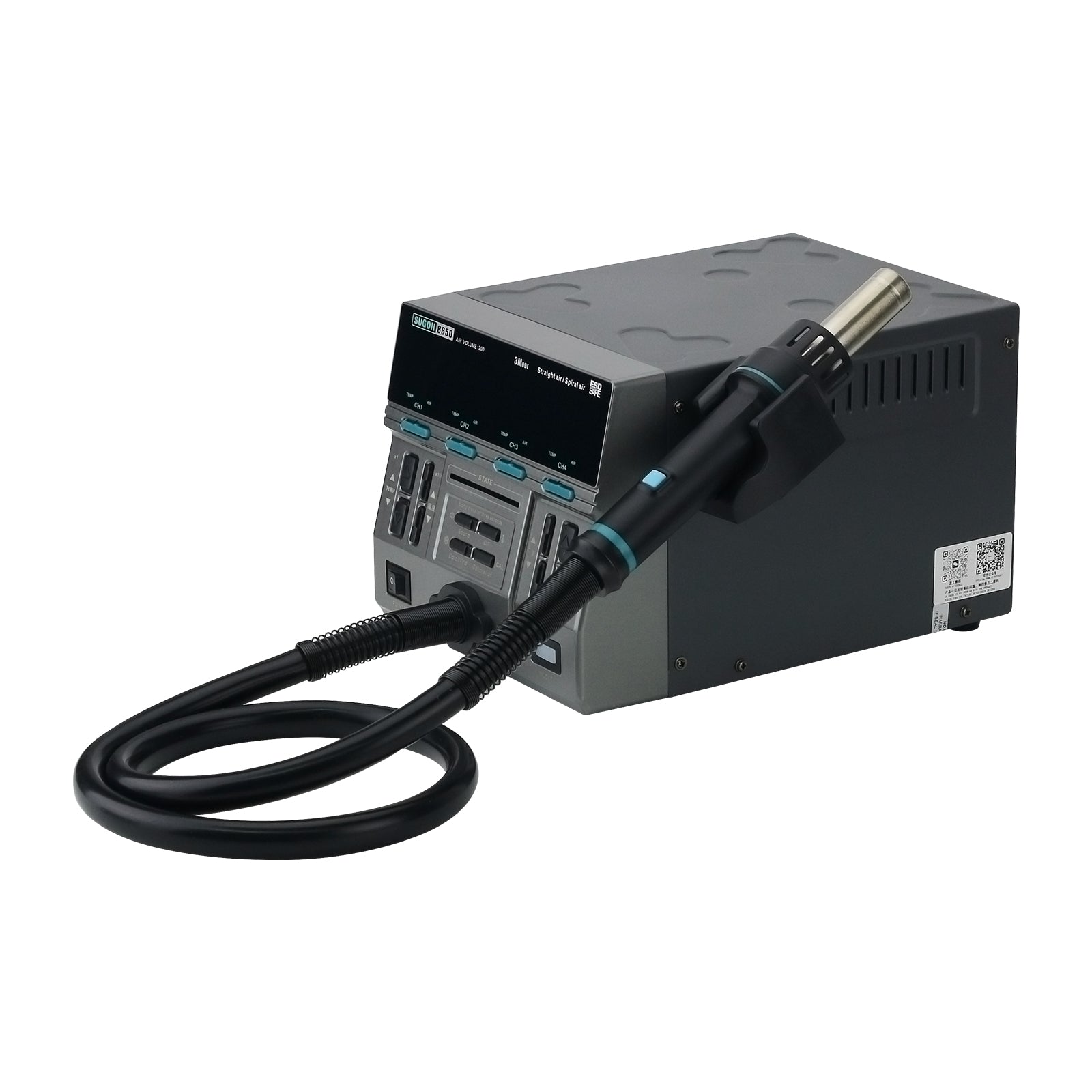 - Innovative hot air gun stand: The stand is designed with stainless steel nozzle storage slots, allowing neat storage and quick replacement of nozzles during use. Under high temperature conditions, there is no need for other auxiliary tools. The front and back direction of the stand can be adjusted to hold two hot air guns.