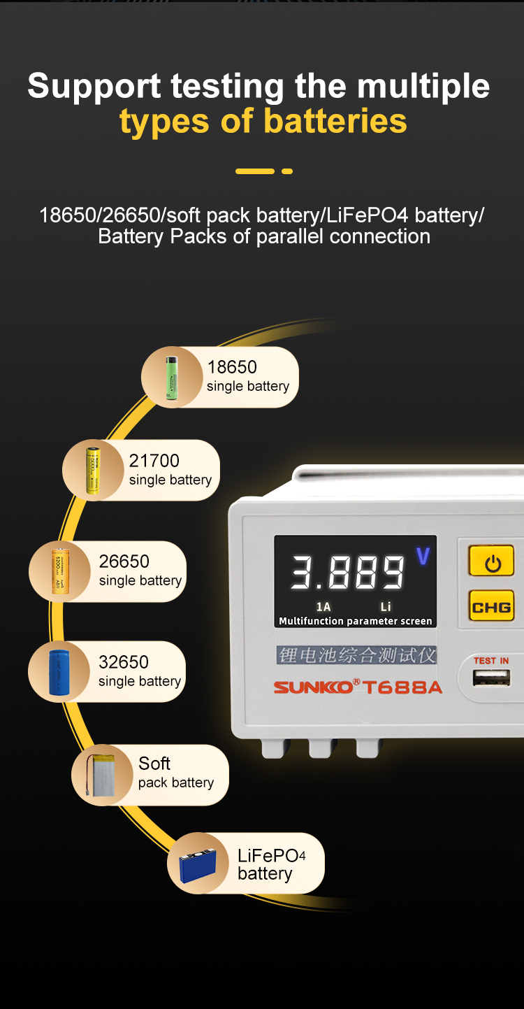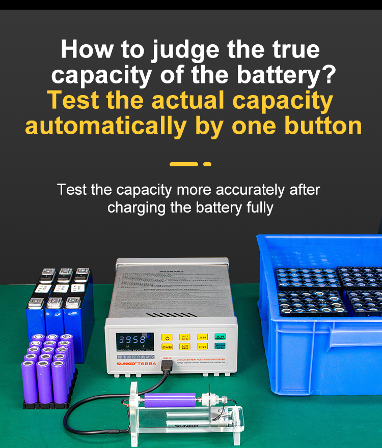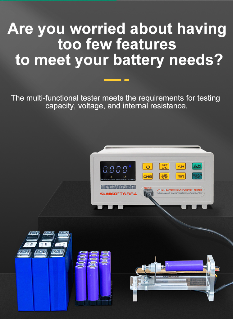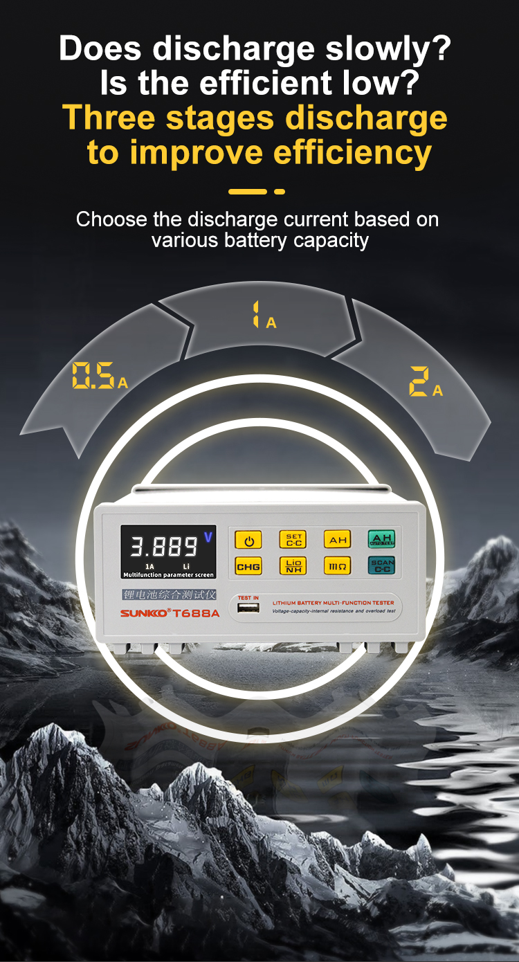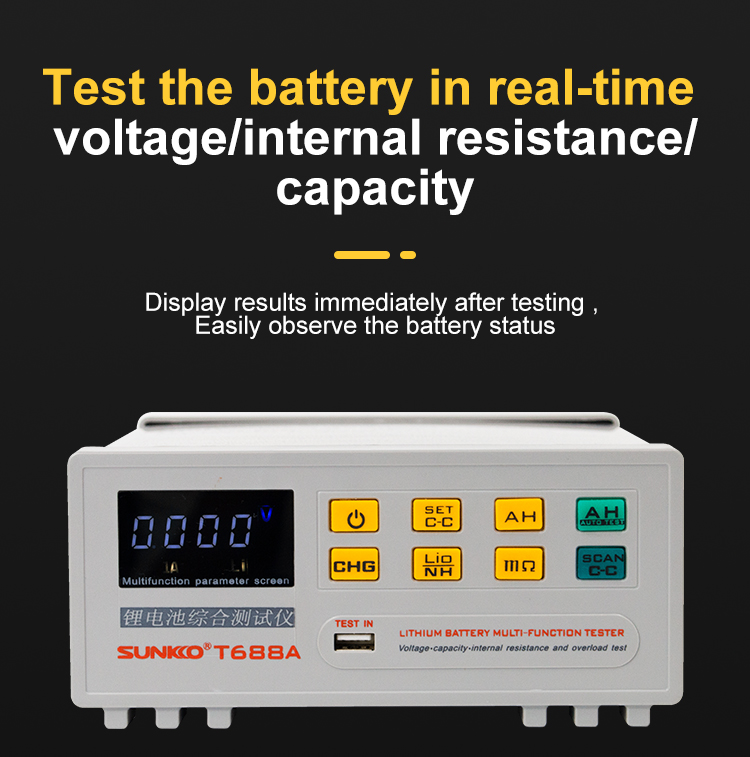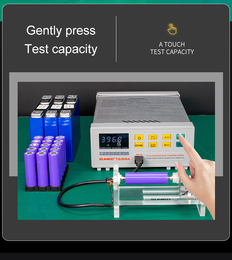 SUNKKO T-688A 18650 Lithium Battery Capacity Tester for Voltage Capacity Internal Resistance and Overload Test