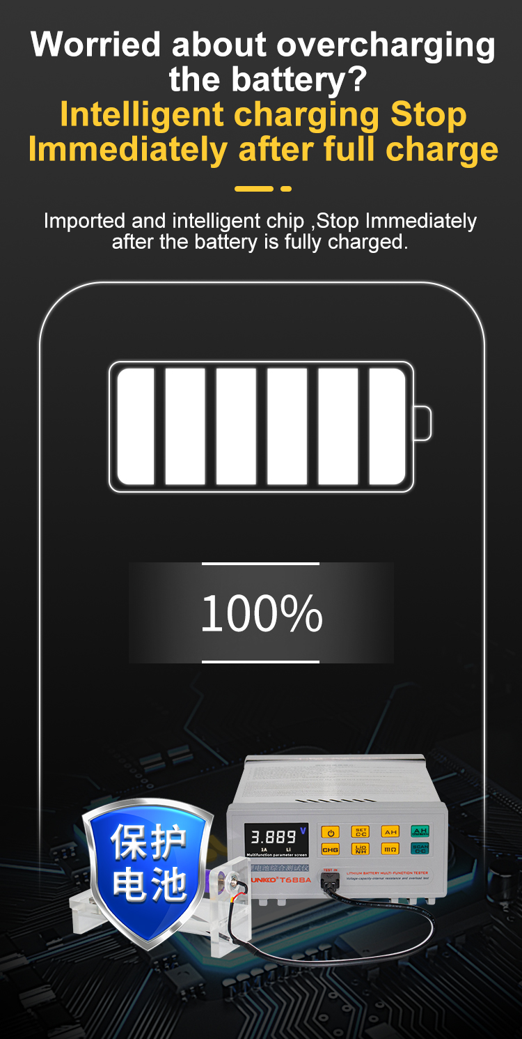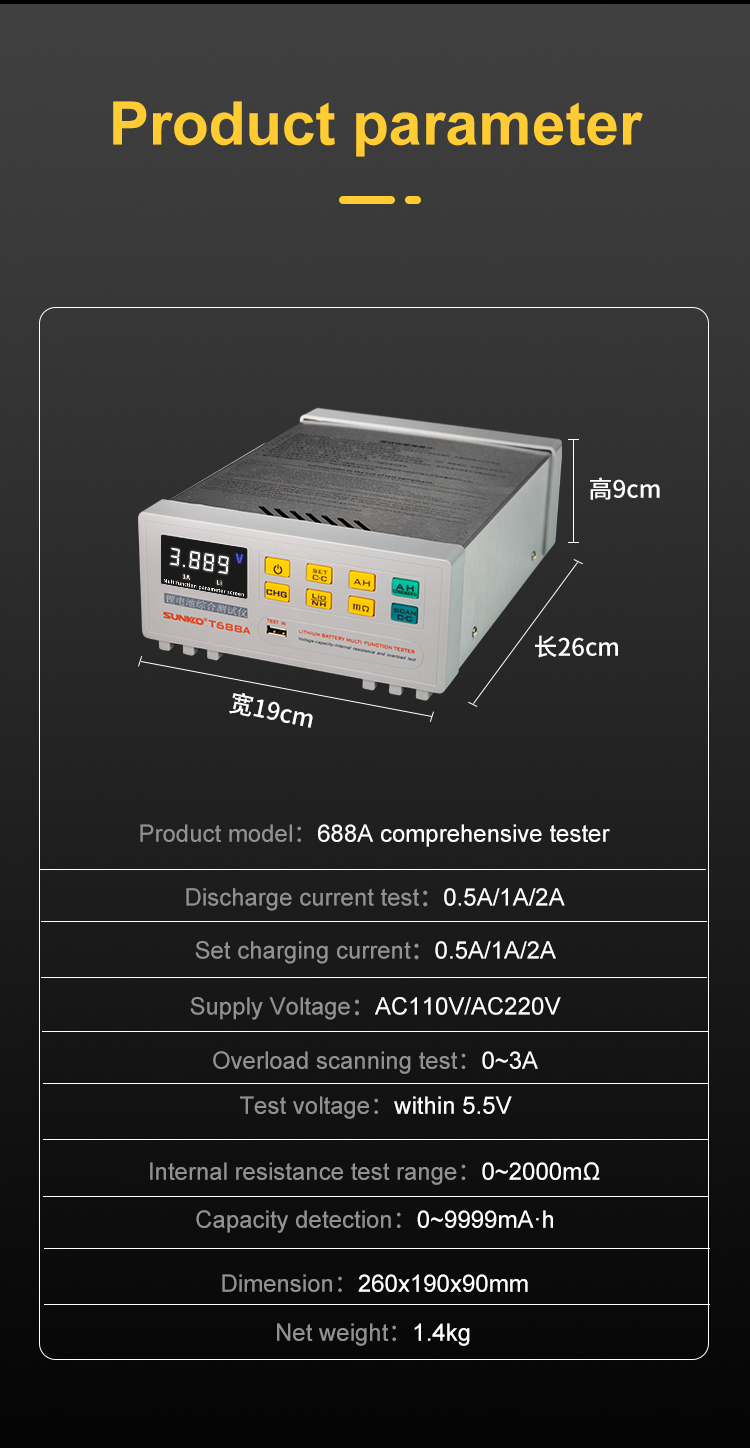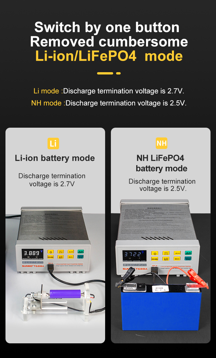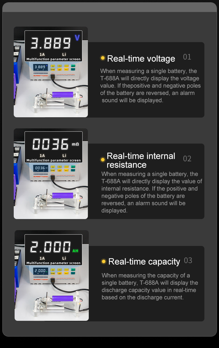 SUNKKO T-688A 18650 Lithium Battery Capacity Tester for Voltage Capacity Internal Resistance and Overload Test