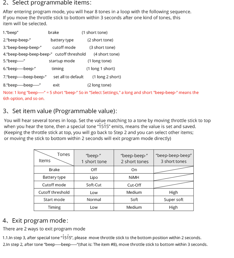 - 1 x Set of ESC