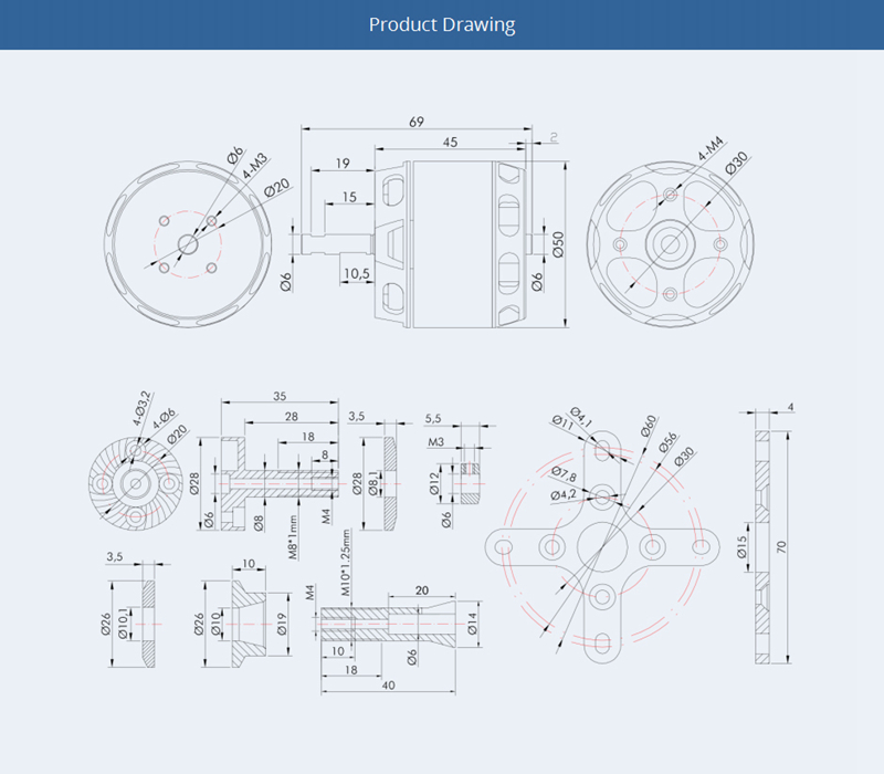 T-Motor Brushless Motor For FPV Fixed Wing RC Airplane Aircraft accessories AT4120 Long Shaft 500KV