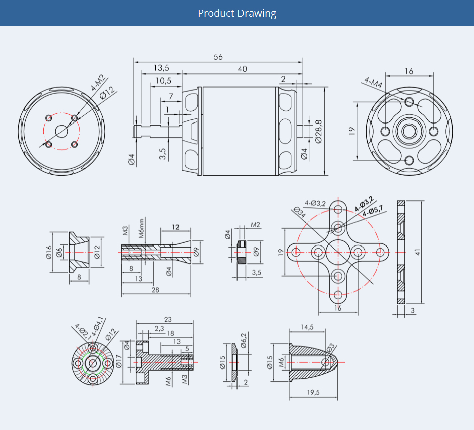 T-Motor Drone Motor Brushless AT2321 Long Shaft 950KV/1250KV For Long Range VTOL Fixed Wing UAV