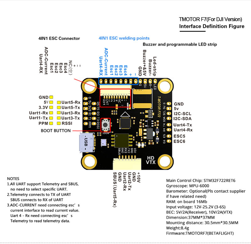 T-Motor RC FPV Flight Controller Drone Flight Controller For DJI HD VTX System (F7 HD Version)