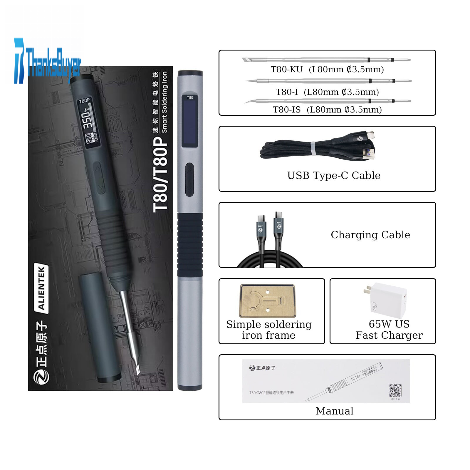 T80 Smart Electric Soldering Iron 100W Portable Constant Welding Station T80-KU/I/IS Soldering Tip with Power Adapter