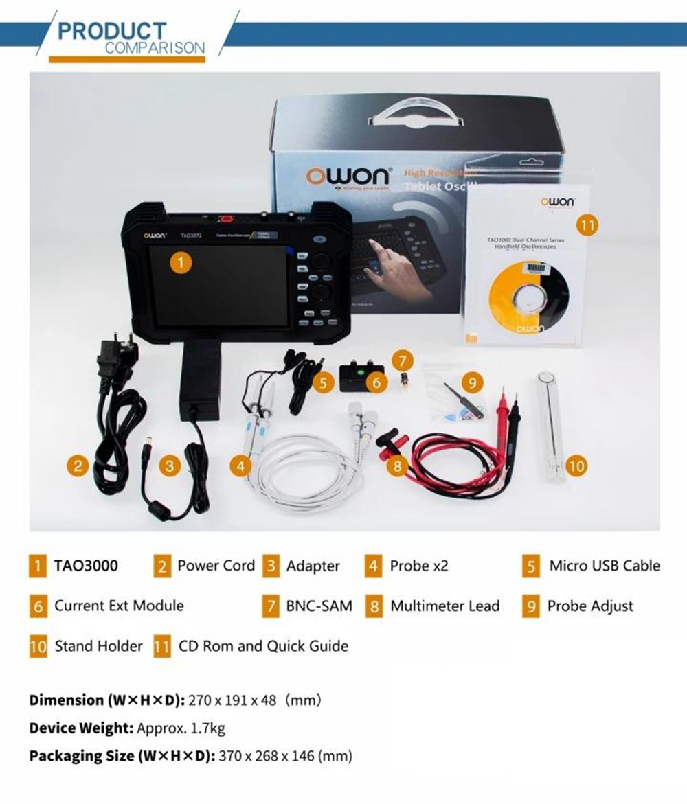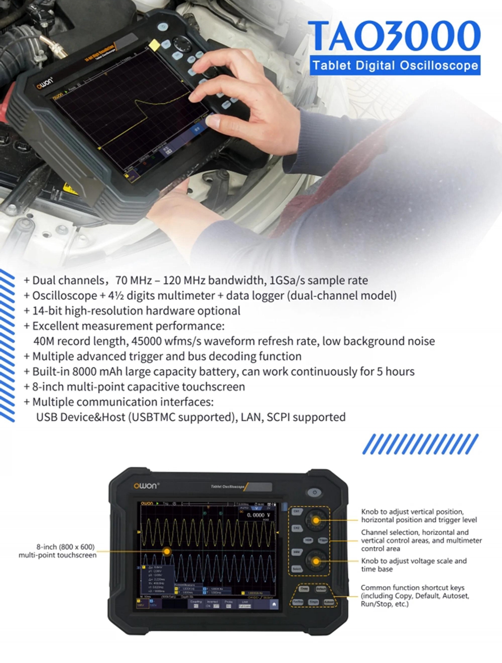 TAO3102 100MHz 2-Channel 8Bits 1GS/s Handheld Tablet Oscilloscope with 8-inch LCD Touch Screen