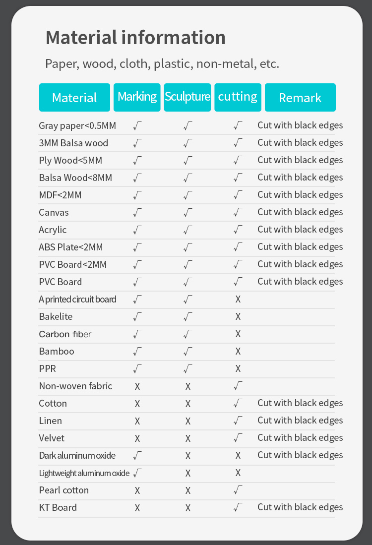- Laser precision: 0.01mm