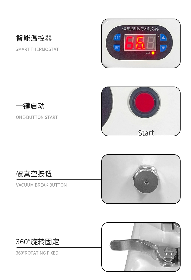 - One-click start, fast and error-free. Temperature control is set to about 80℃. Just press the Start button to work