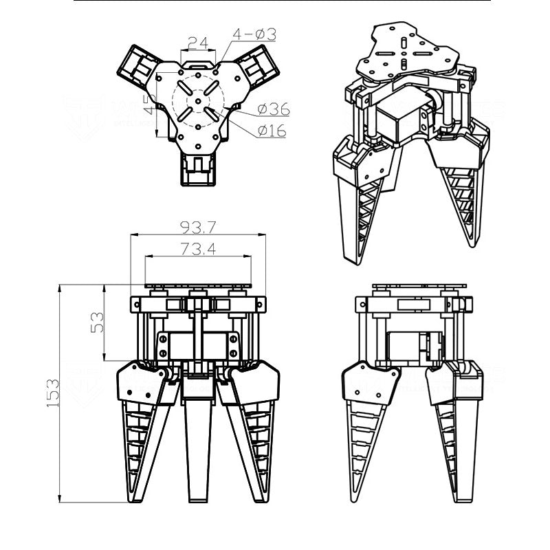 - Flexible finger adjustment: A larger grasping range can be obtained by adjusting the flexible finger