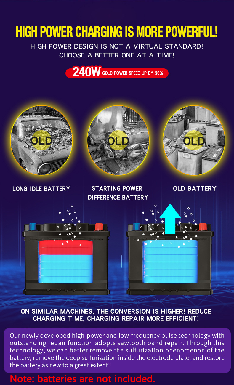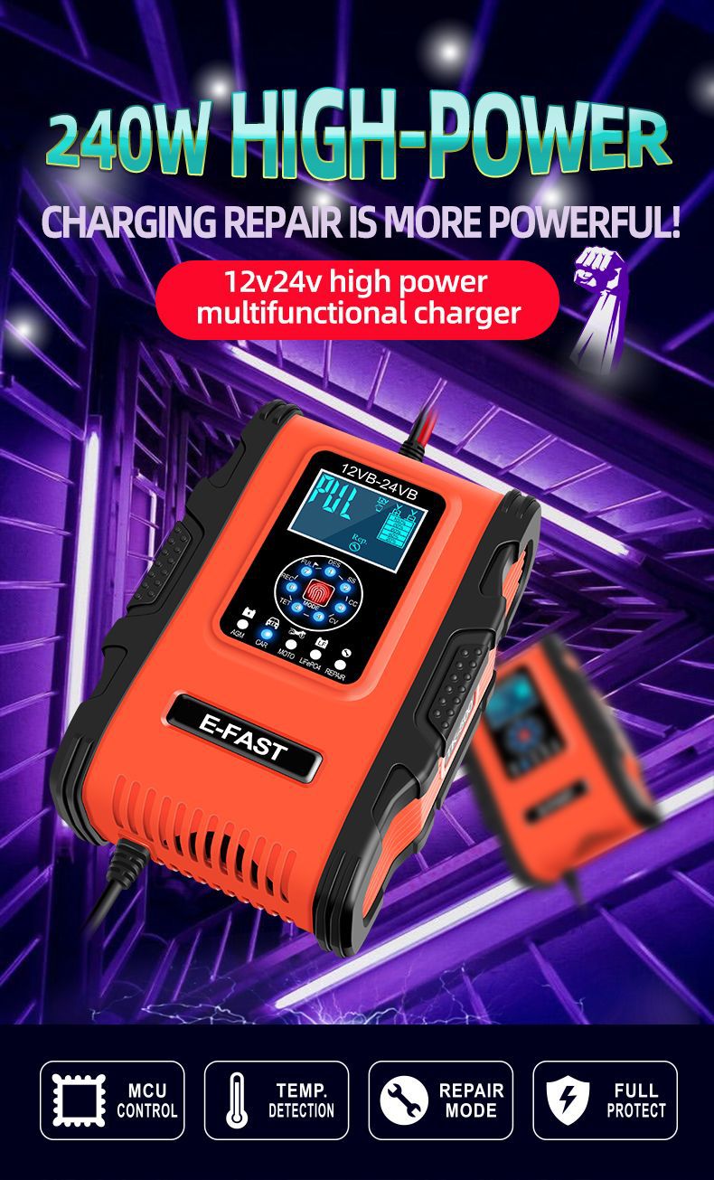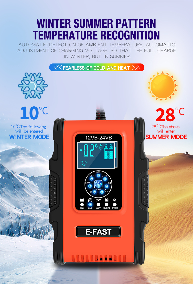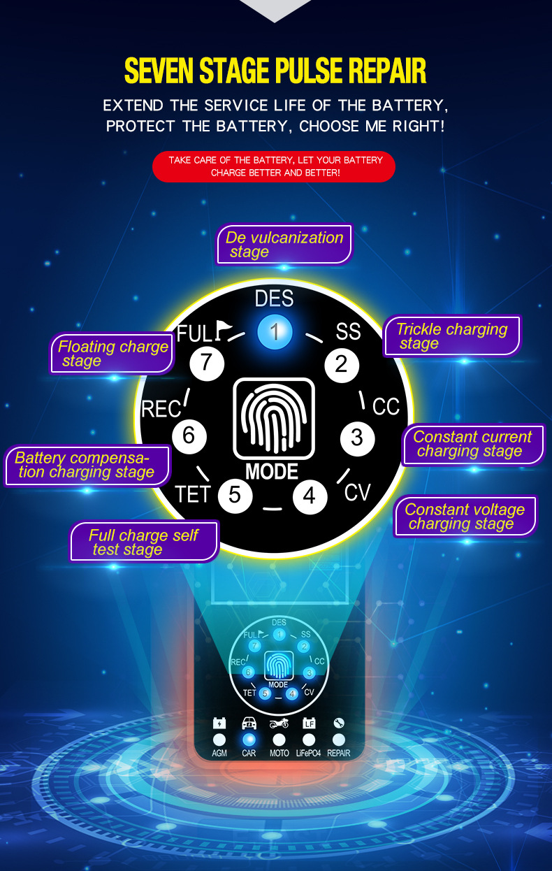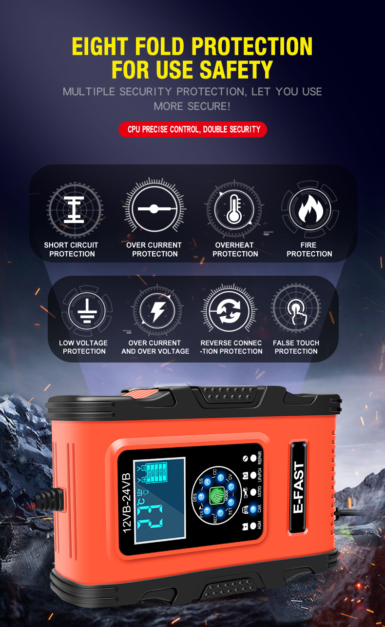 The 7-stage charger is suitable for most battery types including Calcium, Gel AGM, LiFePo4, Wet, lead Acid batteries. They may also help restore drained and sulphated batteries.