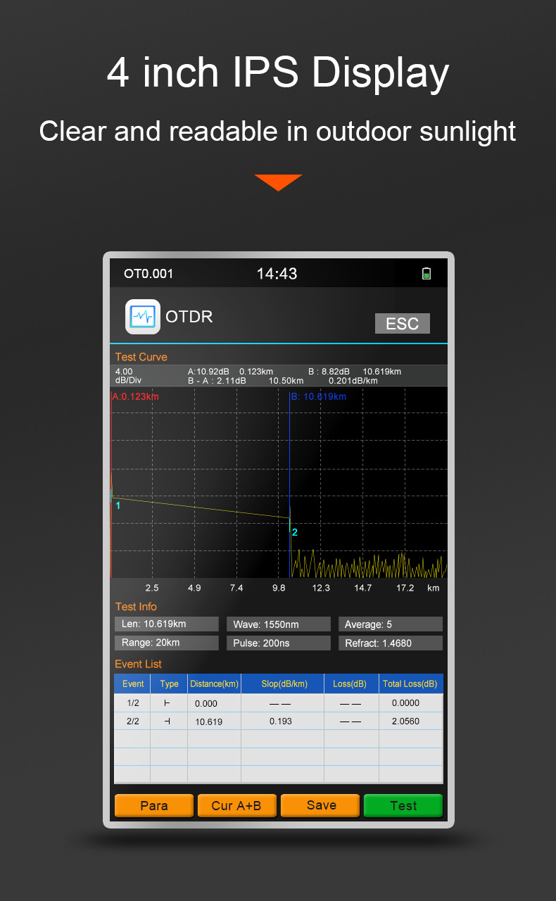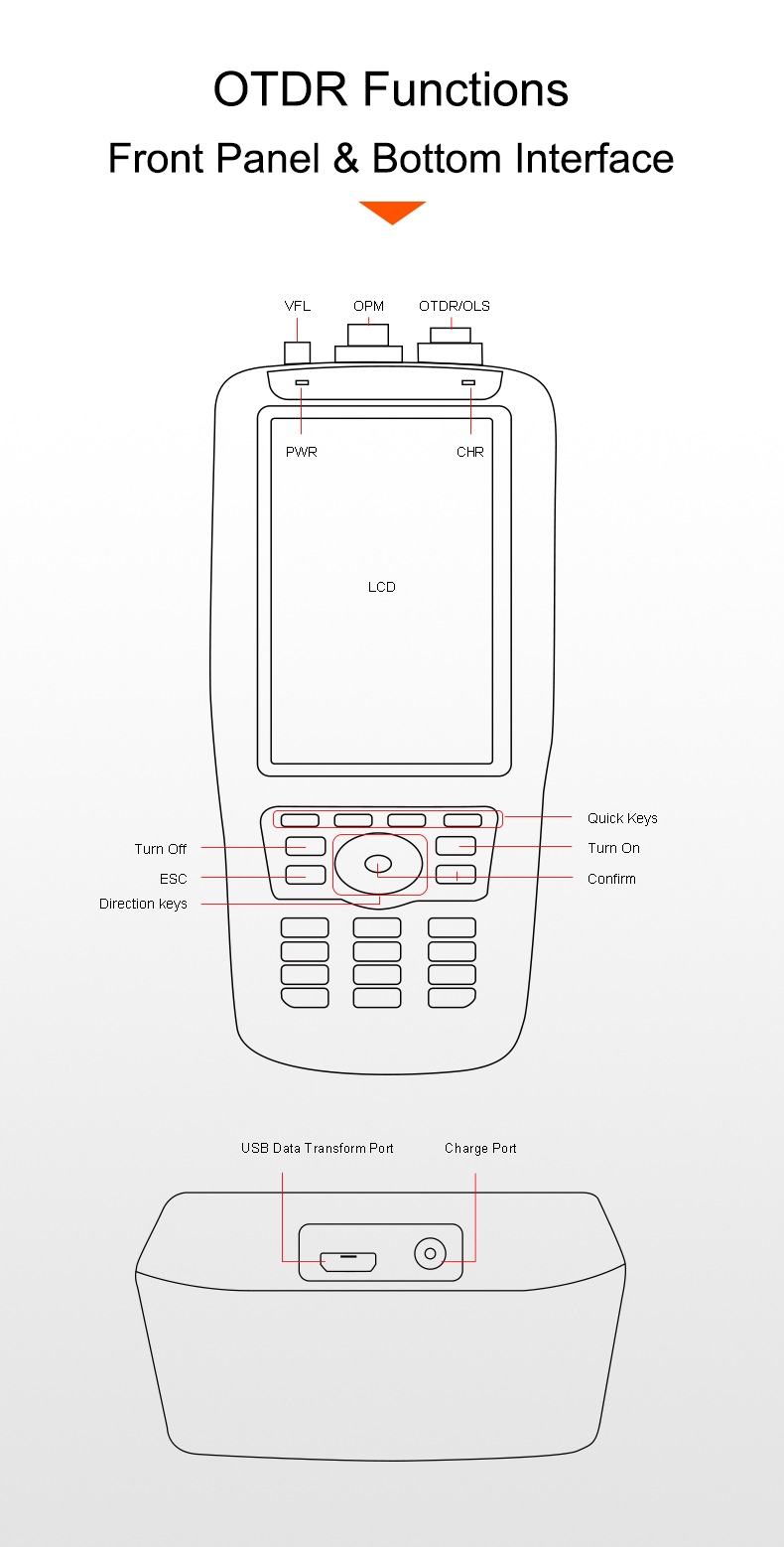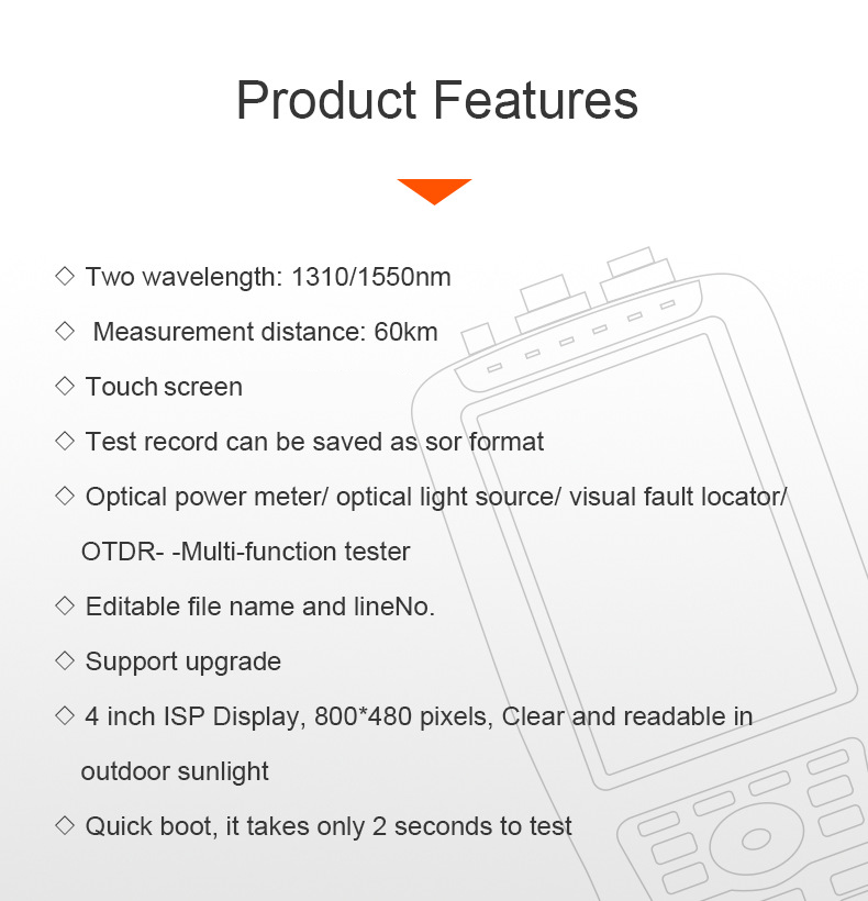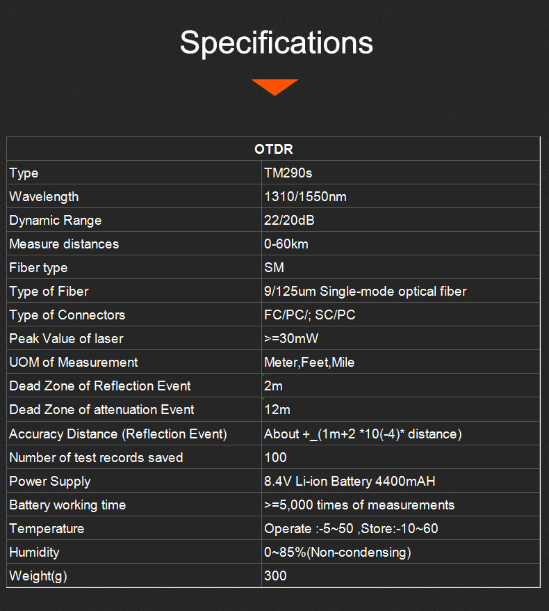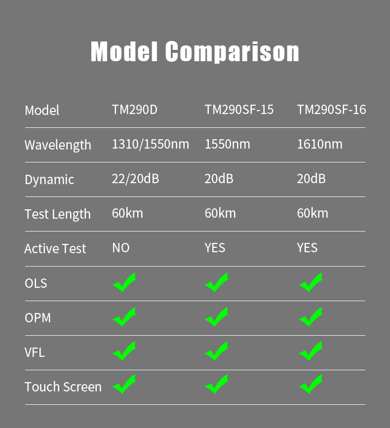 TM290D 60KM OTDR Tester Optical Time Domain Reflectometer 1310/1550NM 4" Touch Screen OLS OPM VFL