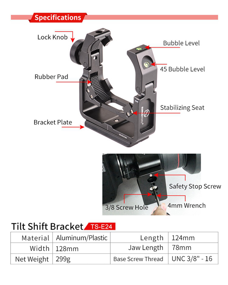 TS-E24 + GH-PRO For Canon TS-E17 TS-E24 Tilt Shift Lens Support Bracket & Geared Tripod Head Load 5KG