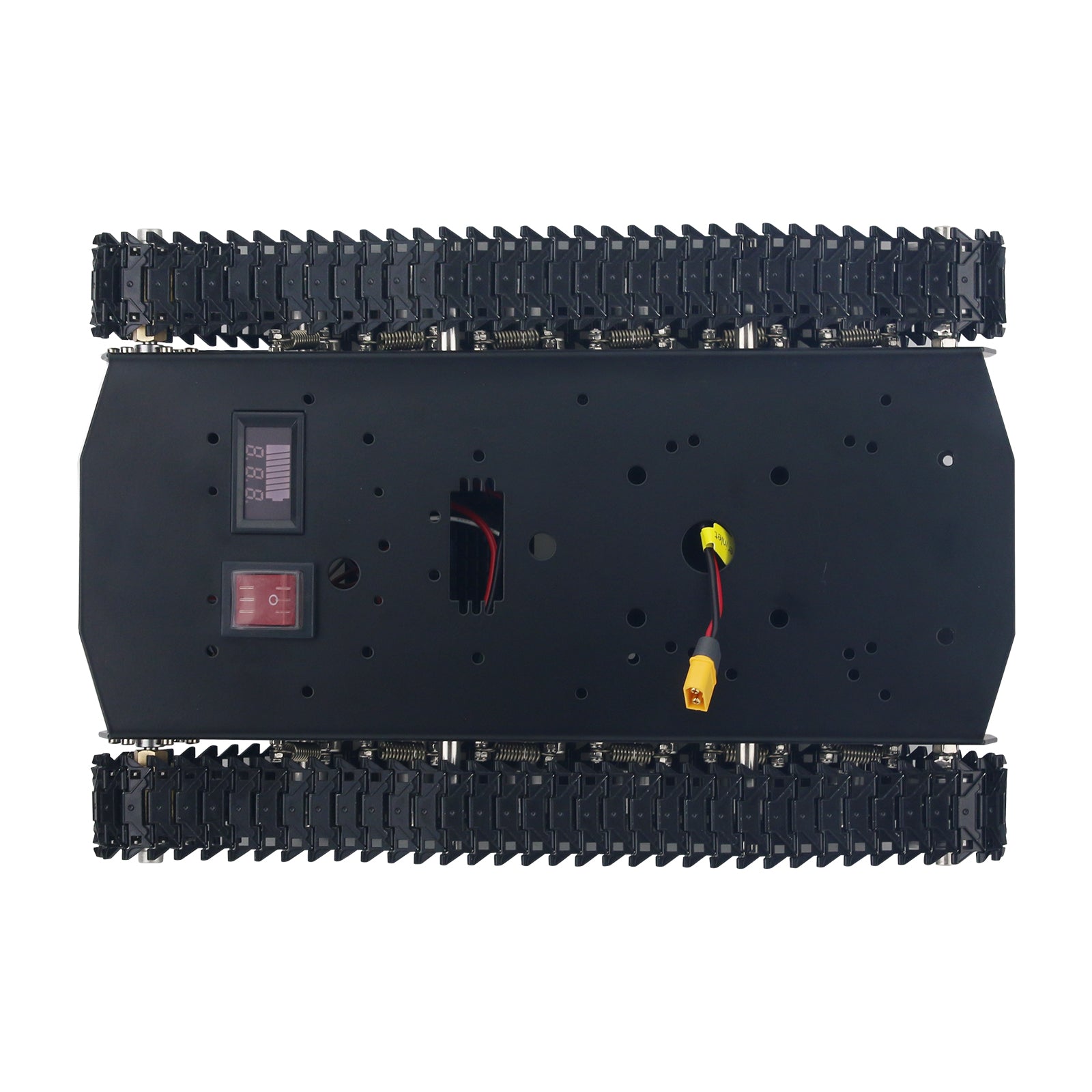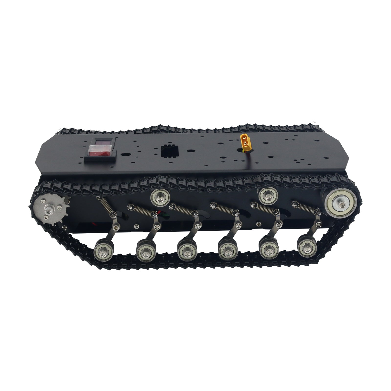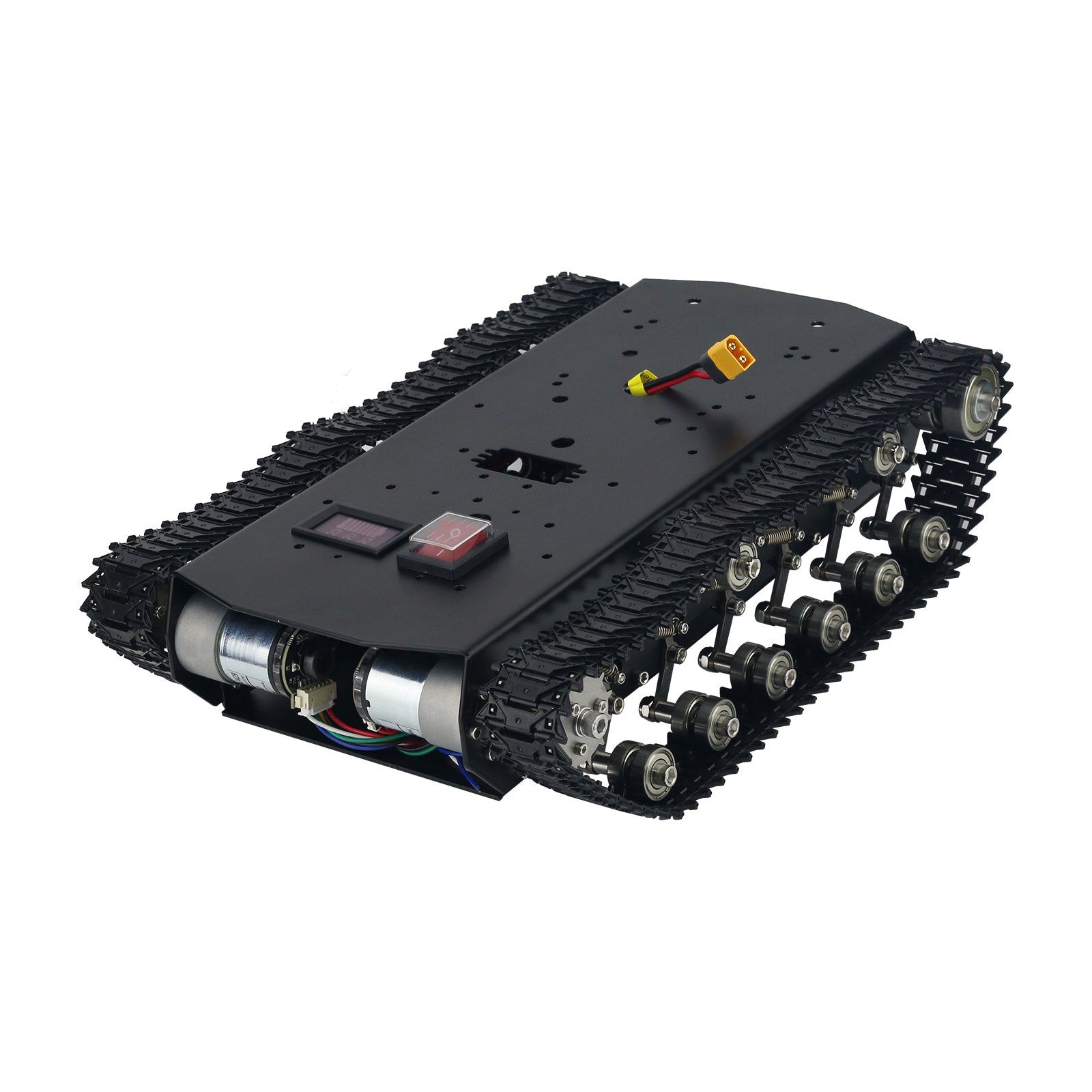 - Product design: rolling bearing design, stainless steel body, high torque 37 motor, rolling small bearing design, independent shock absorption system, stainless steel drive wheel, black metal tracks.