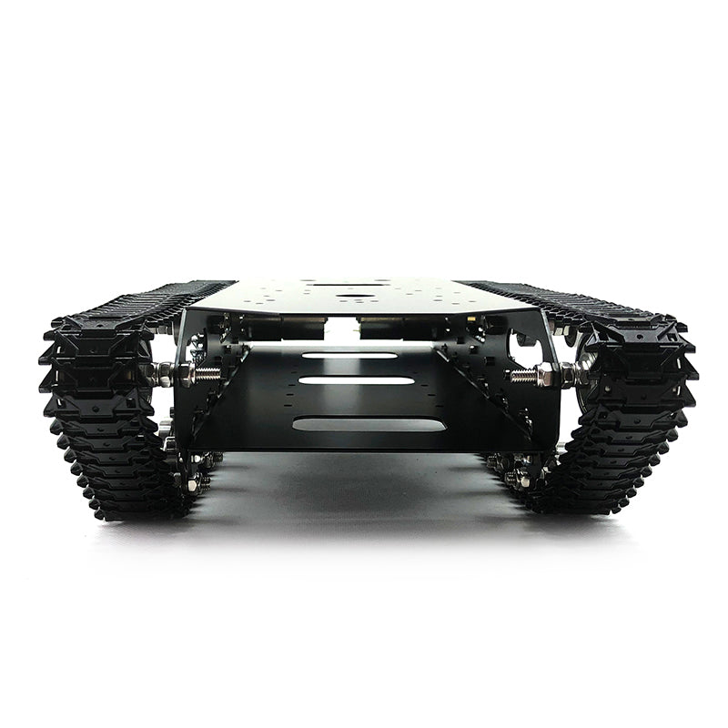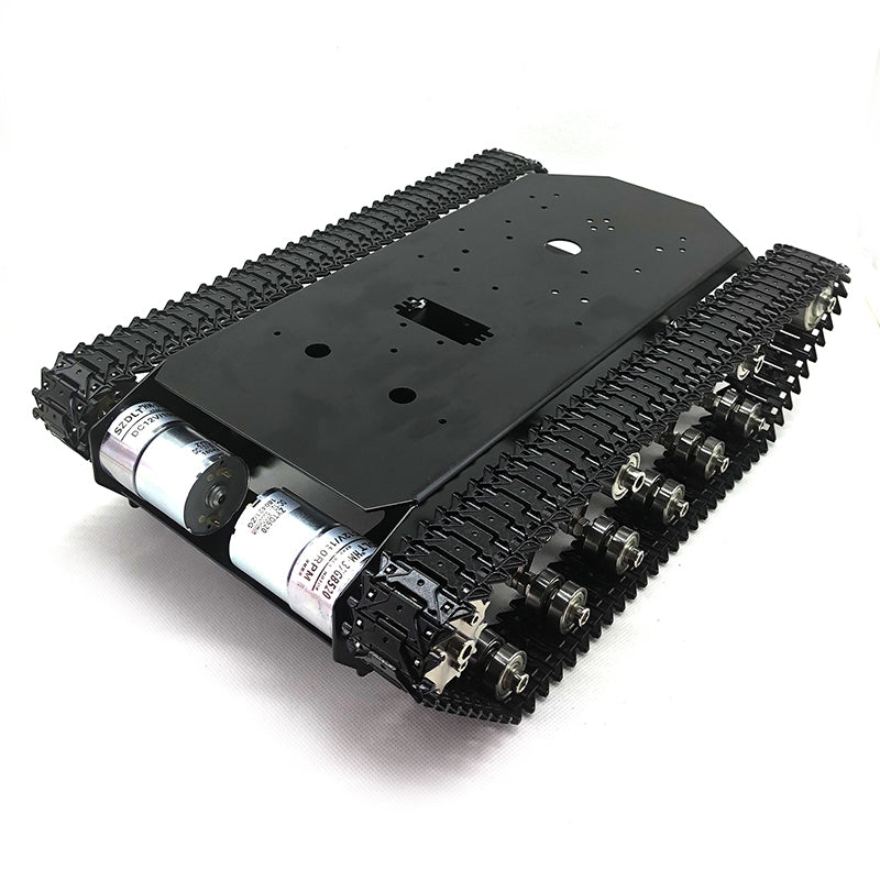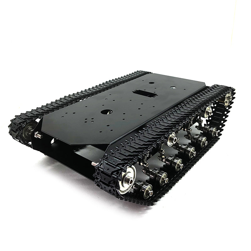 - Product design: rolling bearing design, stainless steel body, high torque 37 motor, rolling small bearing design, independent shock absorption system, stainless steel drive wheel, black metal tracks.