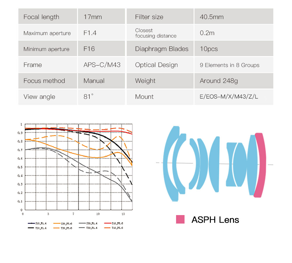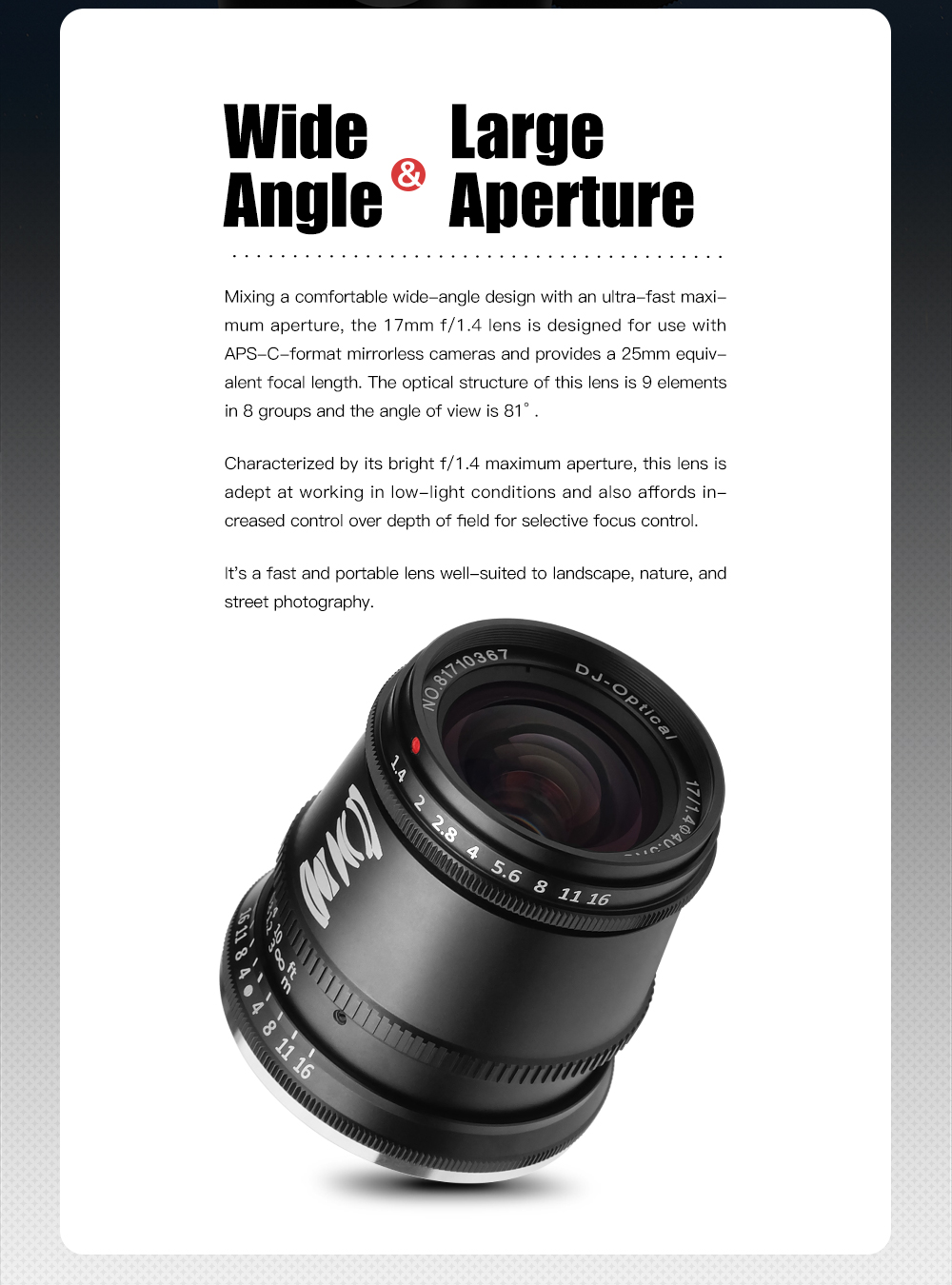 TTArtisan 17MM F1.4 Lens Large Aperture Wide-Angle Fixed-Focus Camera Lens (Black) For Canon M Mount