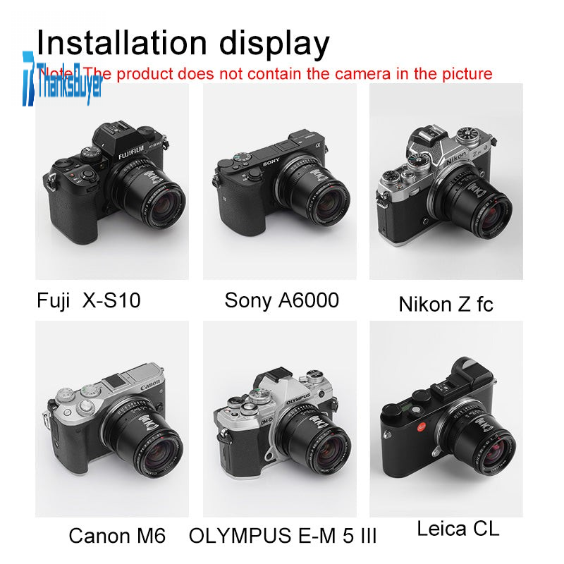 - M43 Mount: For Olympus EPM1, EPM2, EPL1, EPL2, EPL3, EPL5, EPL6, EPL7, EPL8, EPL9, E-P1, E-P2, E-P3, E-P5, E-P6, E-M1, E-M5, E-M10, E-M10II, E-M10IIII and PEN-F; For Panasonic G1, G2, G3, G5, G6, G7, G85, GF1, GF2, GF3, GF5, GF6, GF7, GF8, GF9, GX1, GX7, GX8, GX9, GM1, GM5, GM10, GH1, GH2, GH3, GH4 and GH5