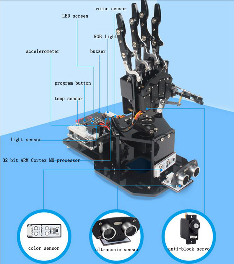 - Programmable Robot Hand: uHandbit is a smart robot hand based on micro: bit programming.