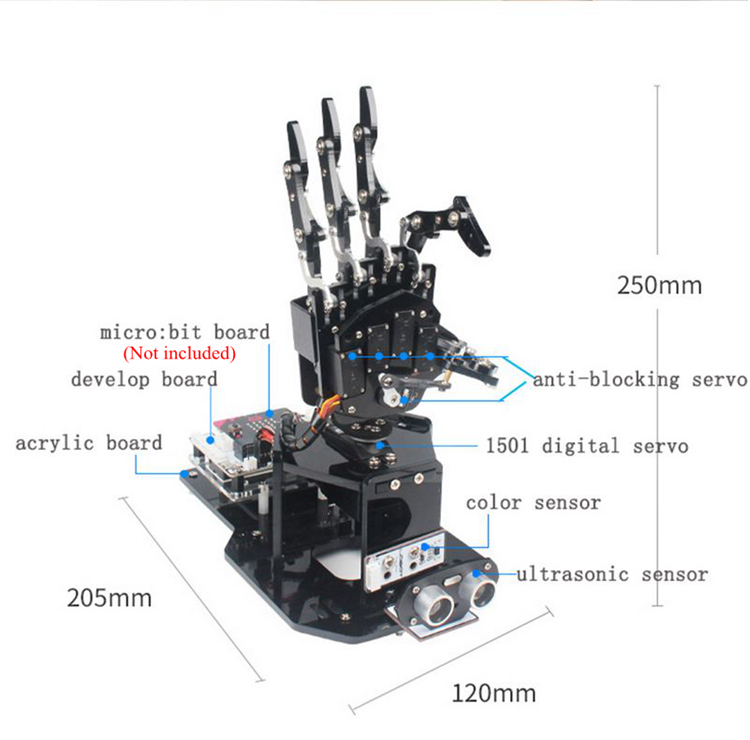 uHandbit Open Source Robotic Hand Unfinished 180° Swivel Base APP Control w/o Micro: bit Main Board