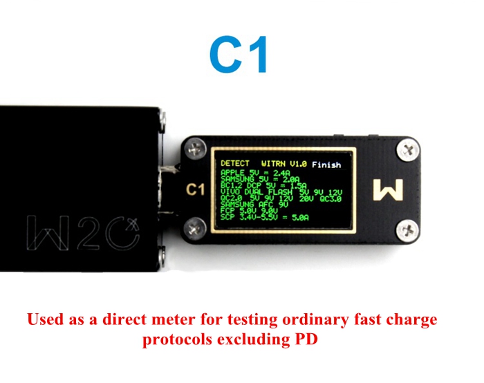 - Used as a direct meter for testing ordinary fast charge protocols excluding PD