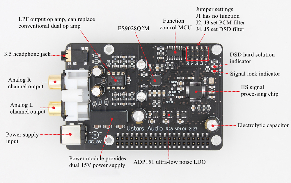 - Attention: Both the headphone holder and the RCA holder are connected to the LPF output. The 3.5 headphone jack is connected to most headphones and can produce sound. The decoder board itself does not have an amp circuit, if buyers want to connect their headphones to use, they need to equip suitable headphone amplifier to get better drive effect)