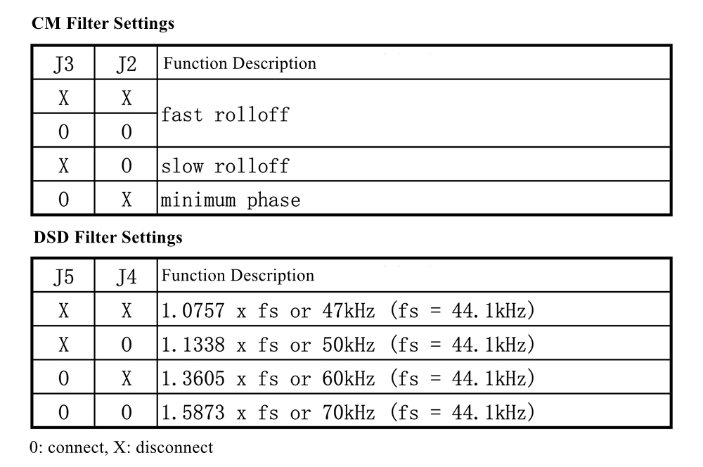 8. Through the combination of jumpers, 4 sets of DSD digital filter coefficients and 3 sets of PCM digital filter coefficients can be set, and you can experience a variety of different sounds on one board