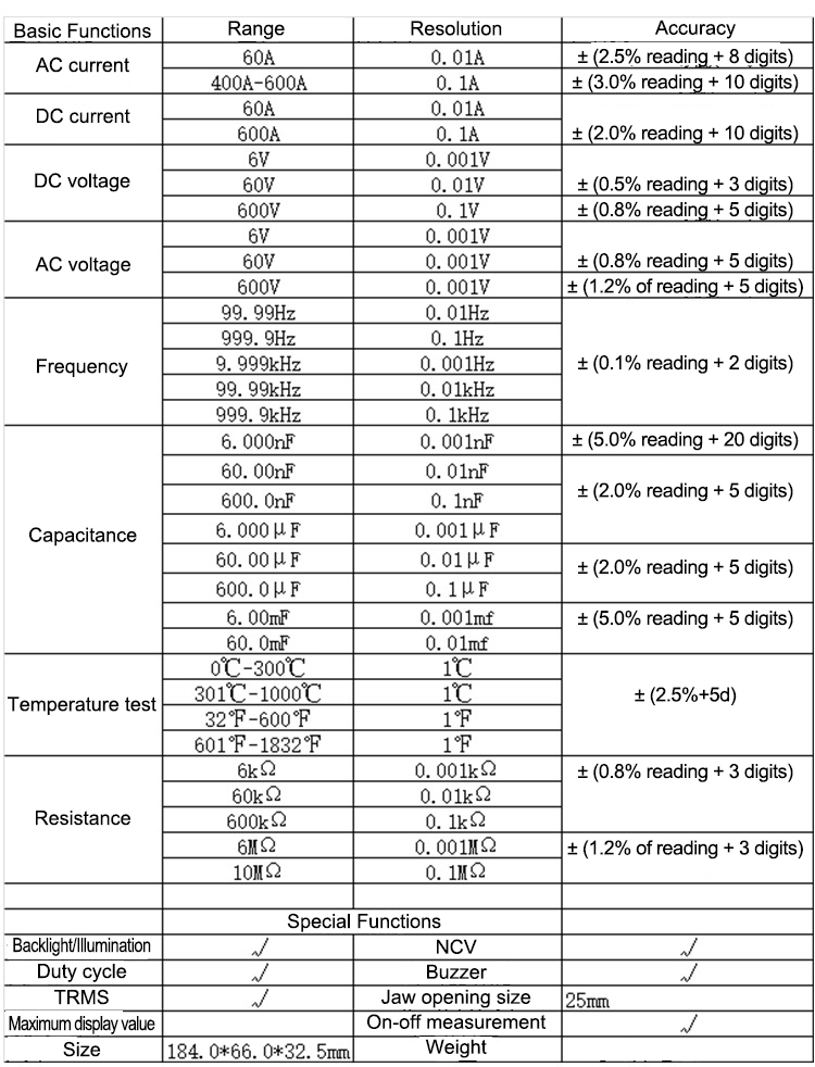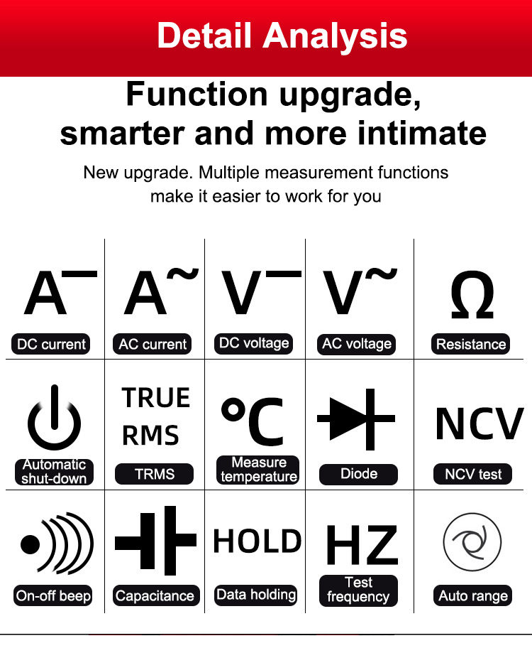 - Brand new upgrade, more functions. Accurately measure voltage, current, resistance, capacitance, and temperature