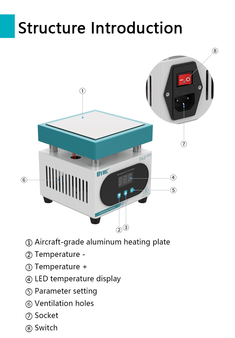 UYUE 946-1010 Preheating Station 3.9 x 3.9" Preheating Plate (110V US Plug) for BGA Phone Repair