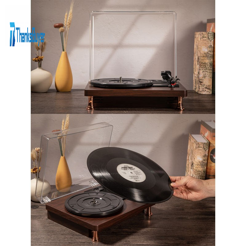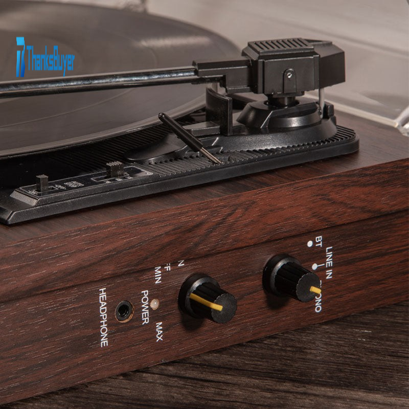 Vinyl Recorder Bluetooth Version 2.0 Stereo Output Power Wood Retro Ornament with Built-in Speaker