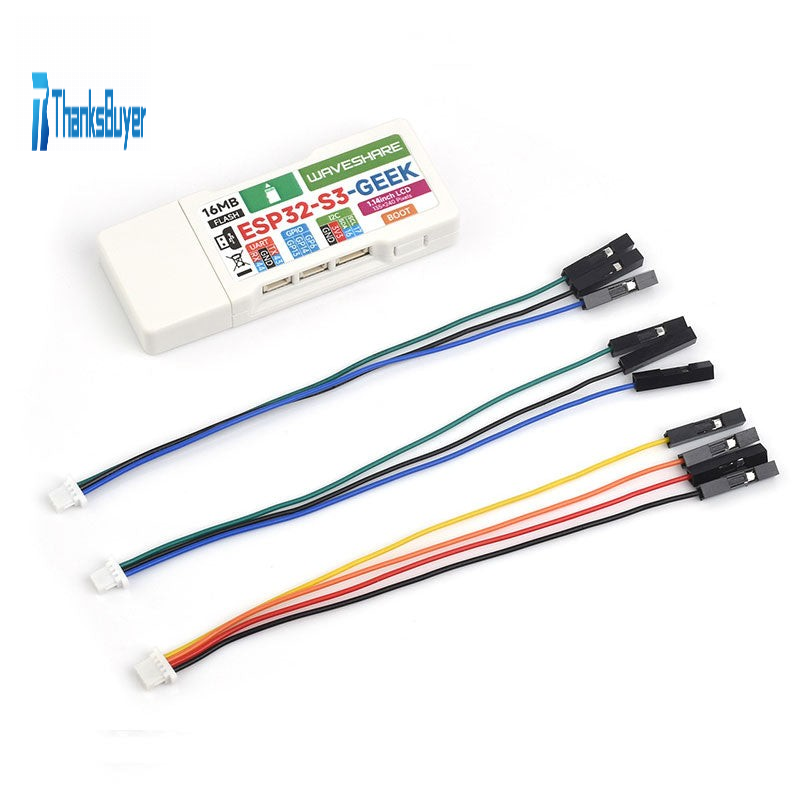 - ESP32-S3-GEEK is a geek development board designed by Waveshare, onboard USB-A port, 1.14inch LCD screen, TF card slot, and other peripherals. Supports 2.4GHz WiFi and BLE 5, with integrated 16MB Flash & 2MB PSRAM, provides I2C port, UART port, and GPIO header, bringing more possibilities for your project.