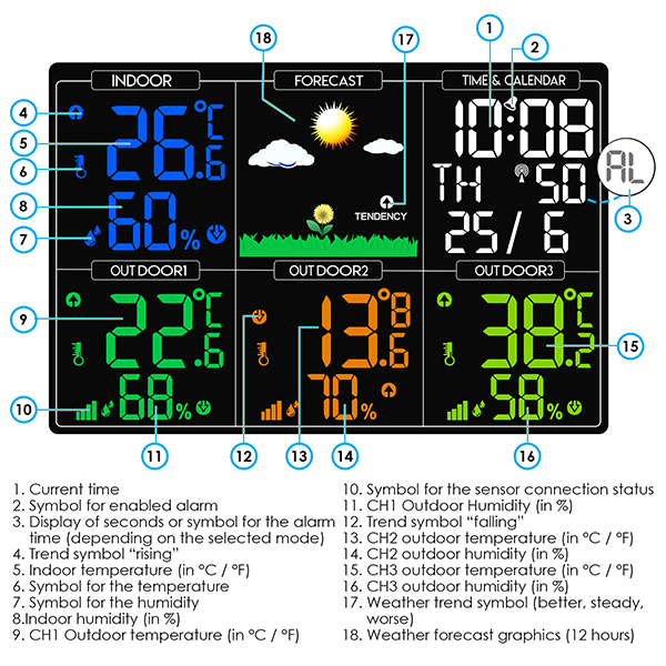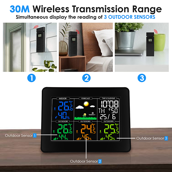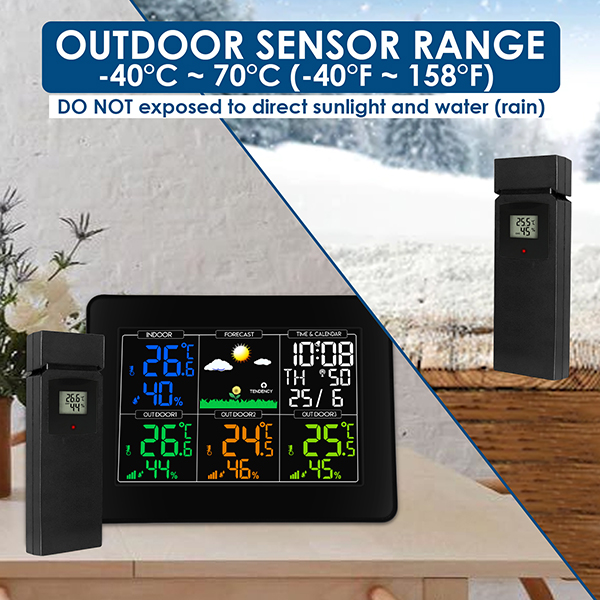 - Simultaneous display the reading of 3 outdoor sensors