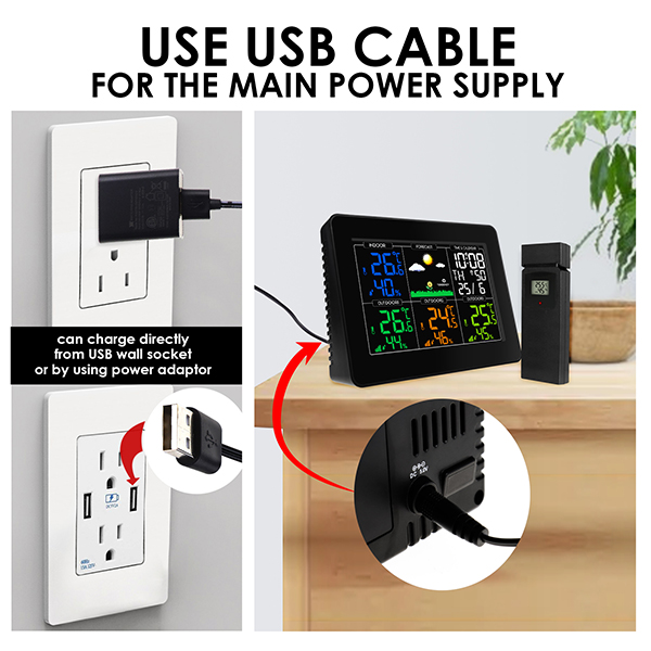 - Outdoor/indoor temperature and humidity measurement