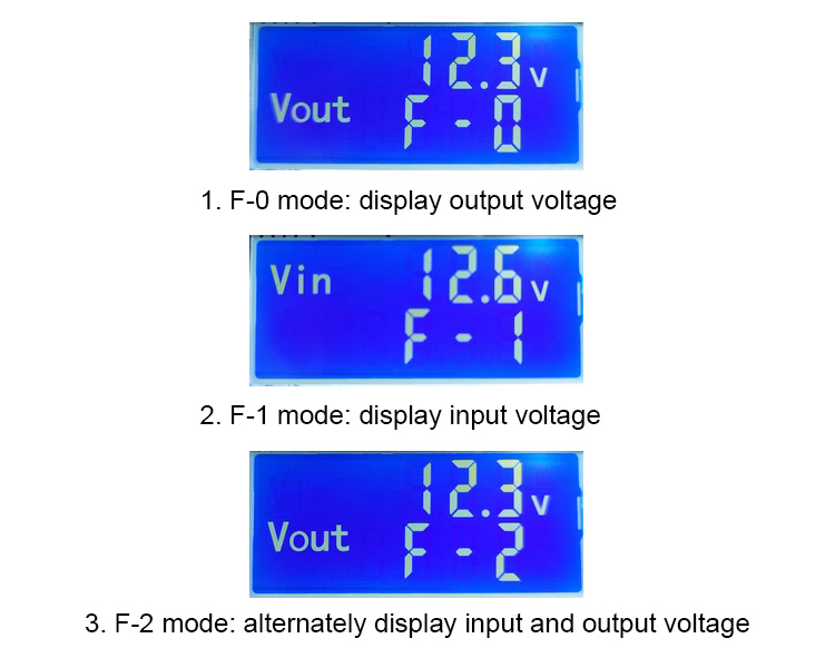In the case of power failure, press and hold the Setting Button, power on, and enter the voltage calibration mode. At this point, the LCD screen begins to flash. Release the Setting Button, press the Setting Button to increase the voltage, and press the OK Button to decrease the voltage. The calibration voltage is the correct input voltage. For example, if the input voltage is 12.65V, the voltage will be adjusted to 12.65V at that time, and the value will be automatically saved after 2 seconds. Calibration is completed by exiting without power.