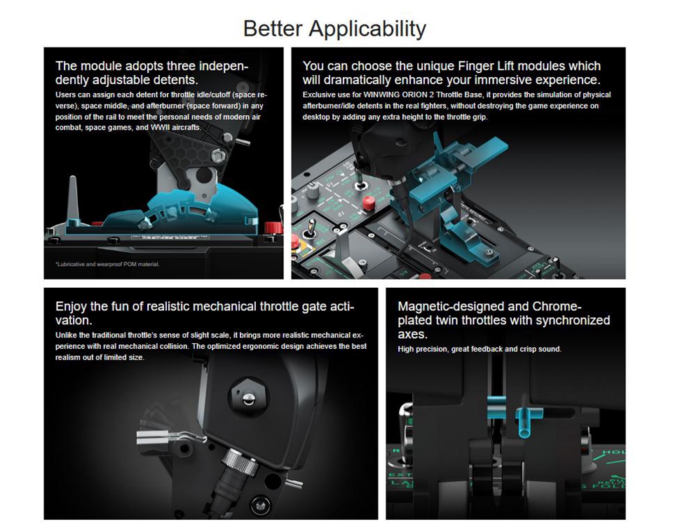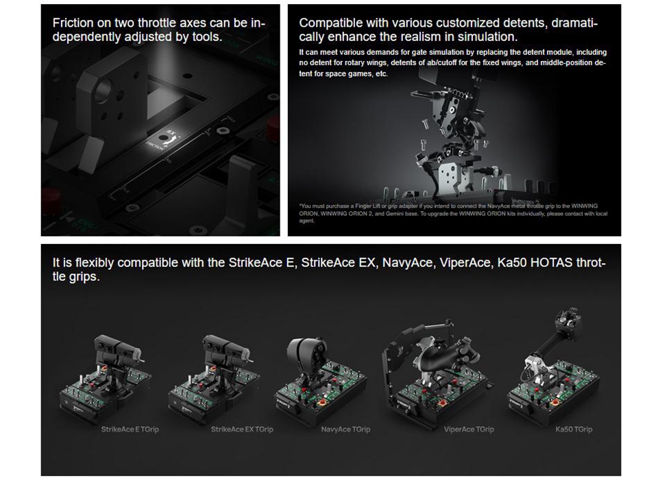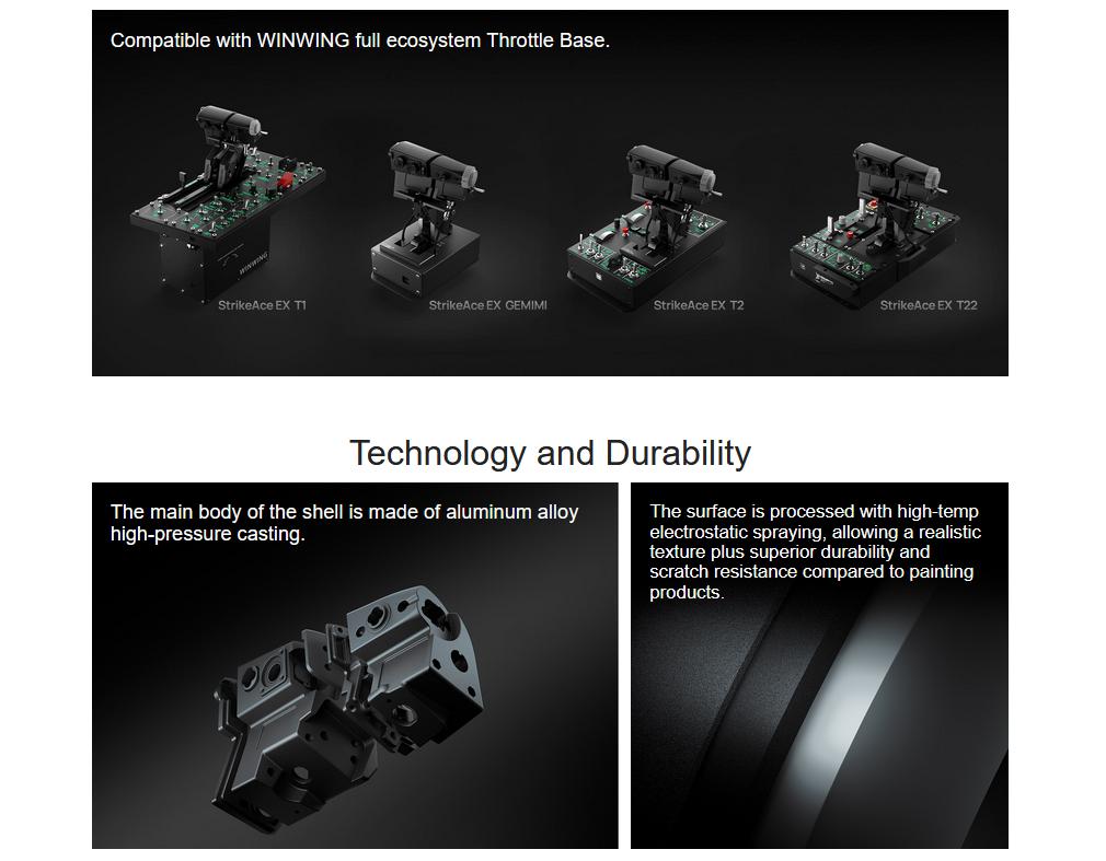 WINWING Flight Game Simulator Orion 2 StrikeAce EX Metal Throttle without Finger Lift + Orion 2 ViperAce Joystick