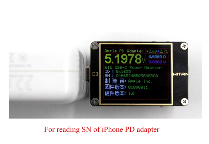 - PD Switch: Connected to C3 with a CC cable, it supports for PD monitoring, and reading SN of iPhone PD adapter.