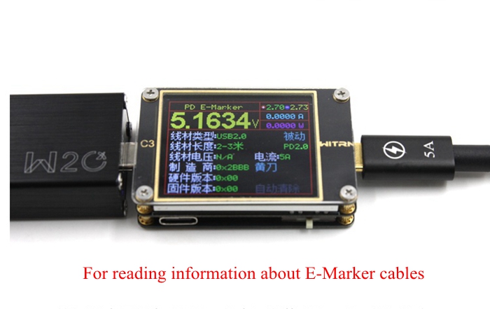 - Can be used to get the information of E-Marker cables via ordinary 5V power supply or HID port power supply. (Note: For testing E-Marker cables, please not use PD power supply.)