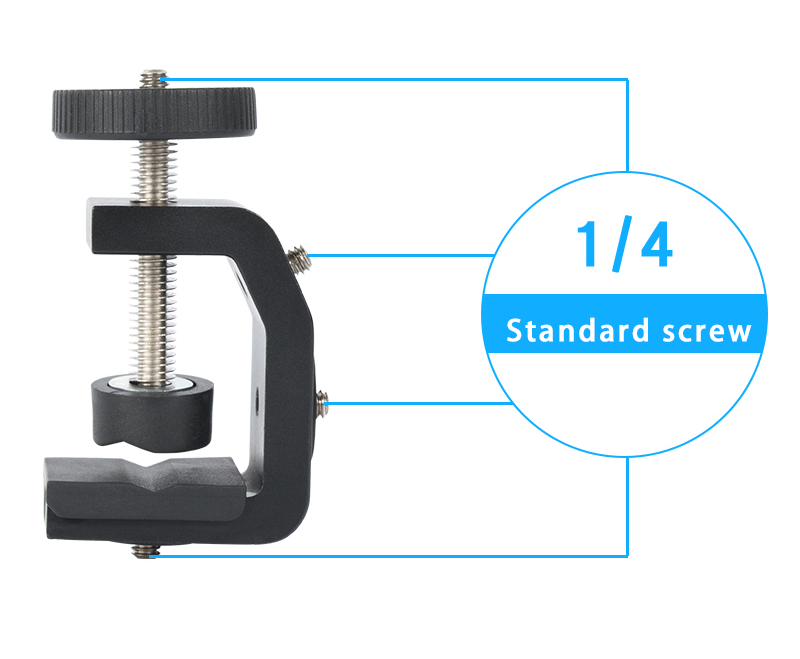 WN-30 C Clamp Mount Aluminum Alloy Desktop Camera Clamp 1/4 Screw Thread for Mobile Phone Camera