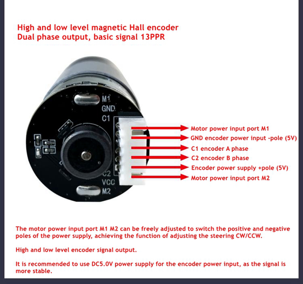 - Motor: planetary gearbox motor with Hall sensor x 4