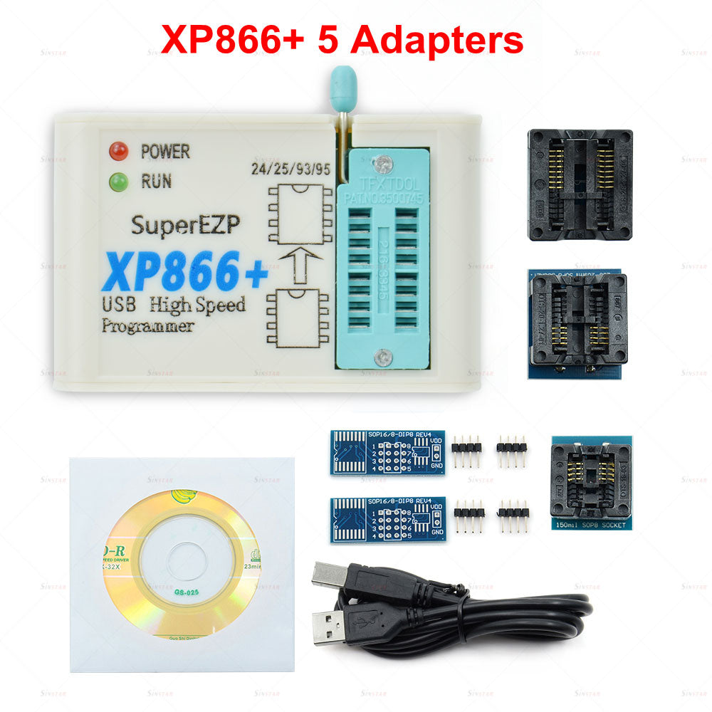 XP866+ High Speed USB Programmer SPI FLASH Chip Programmer and 5 Adapters for 24 93 25 95 Series