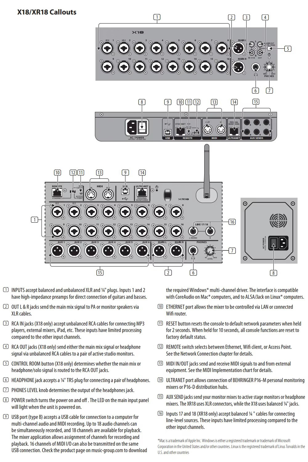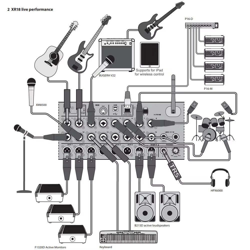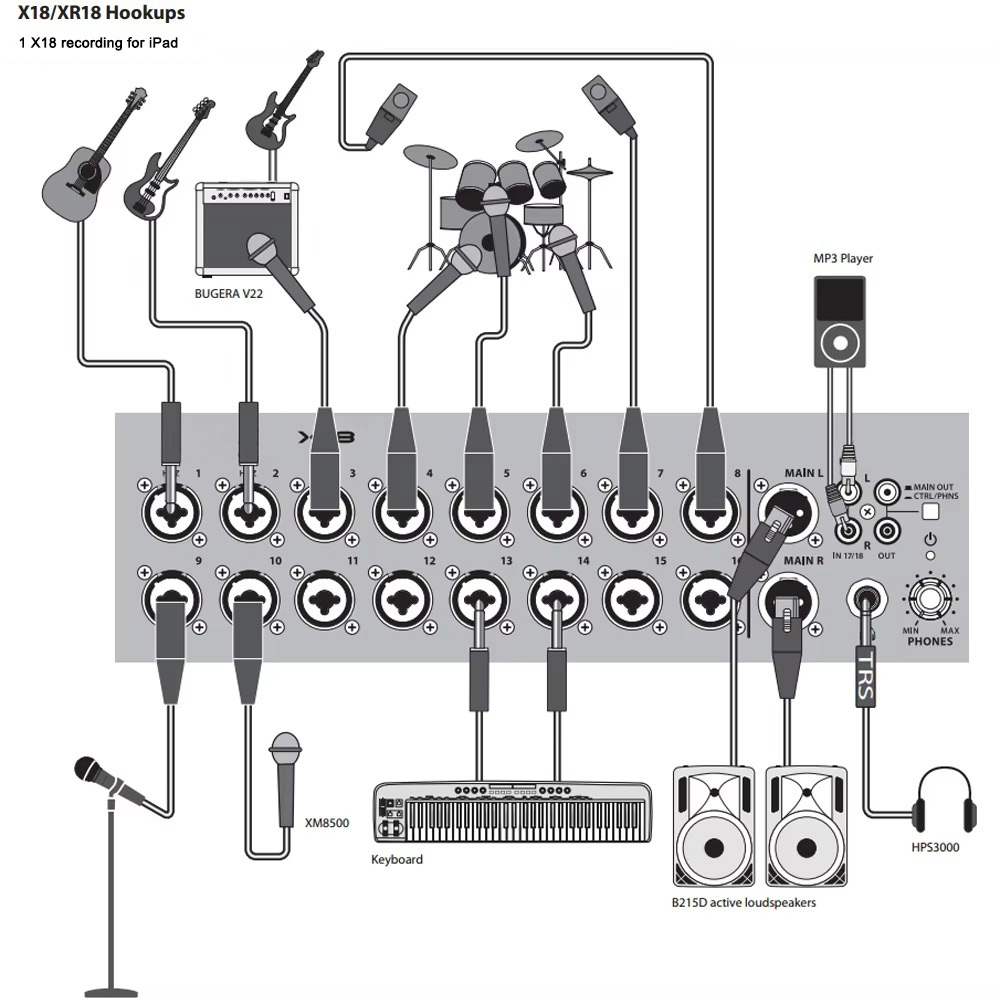 * The XR18 sports a fast, bi-directional 18 x 18 USB interface, making the XR18 a powerful digital mixing solution for recording directly to the digital audio workstation running on your iPad or computer. You can see how this arrangement can boost productivity in a live scenario, giving you an effortless, immaculate multitrack recording of the show to take back to your studio for post production. But whether you're capturing a live performance or tracking in the studio, you'll find the XR18 makes it amazingly easy to record great-sounding tracks.