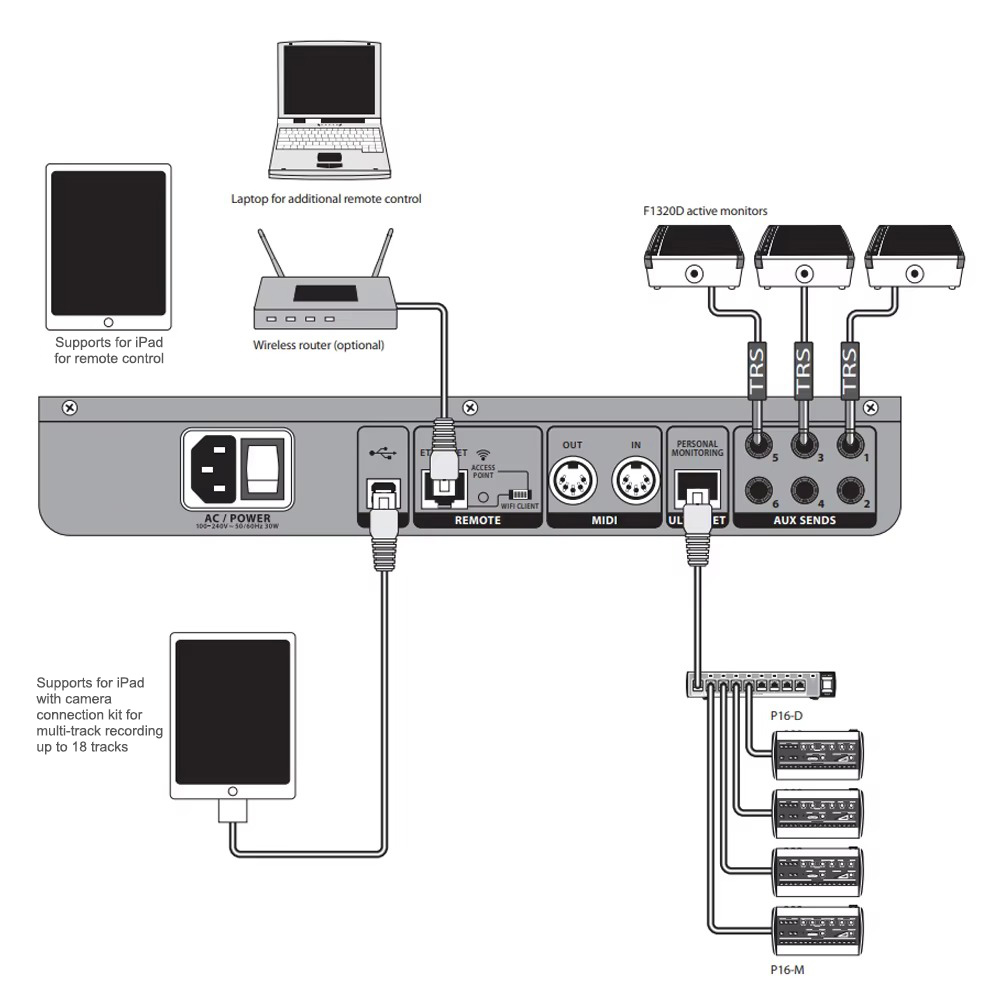 * Series 18-channel, 12-bus Stage Box/Rackmount Digital Mixer for iPad/Android Tablets with 16 Gain-Programmable Preamps, Integrated Wi-Fi Module, Multi-channel USB Audio Interface, and Rack Ears