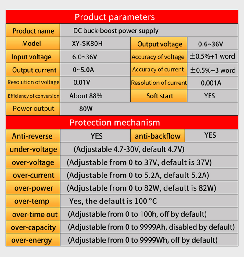 XY-SK80H 80W DC Adjustable Power Supply Regulated Power Supply Buck Boost Module for Solar Charge