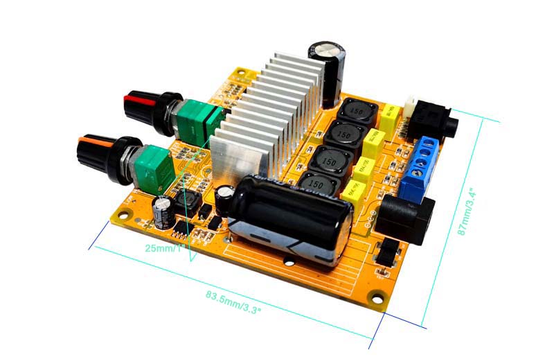 - Speaker: 4Ω-8Ω speakers can be connected. Its power can reach 18W*2 using 12V power supply, and its power can reach 50W*2 using 24V power supply