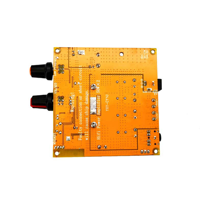 The power amp board adopts a high-performance digital power amplifier chip as the core, enabling left and right channel stereo power amplifier output. It supports a 12-24V DC single power supply. It can support 50Wx2 stereo channel output and Bluetooth 5.0. With two external audio input interfaces, with preamplifier and bass sound processing; bass frequency, total volume, two potentiometers to adjust.