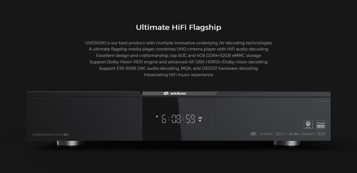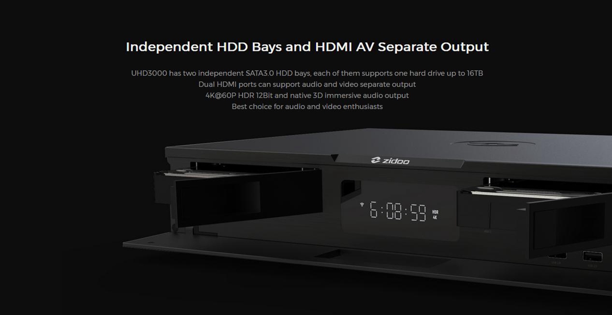ZIDOO UHD3000 Ultra-HD Blu-ray Music Player 4K HDR Dolby Vision Hard Drive Audio Player HiFi Decoder