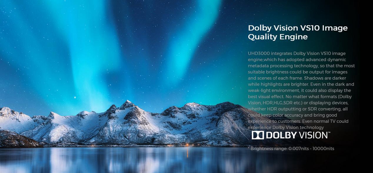 - More advanced Dolby Vision technology supports high-quality Dolby Vision low latency (LLDV) output, which can output the most suitable brightness for each frame and scene, shadow is darker while highlight is brighter, vision effect is amazing.