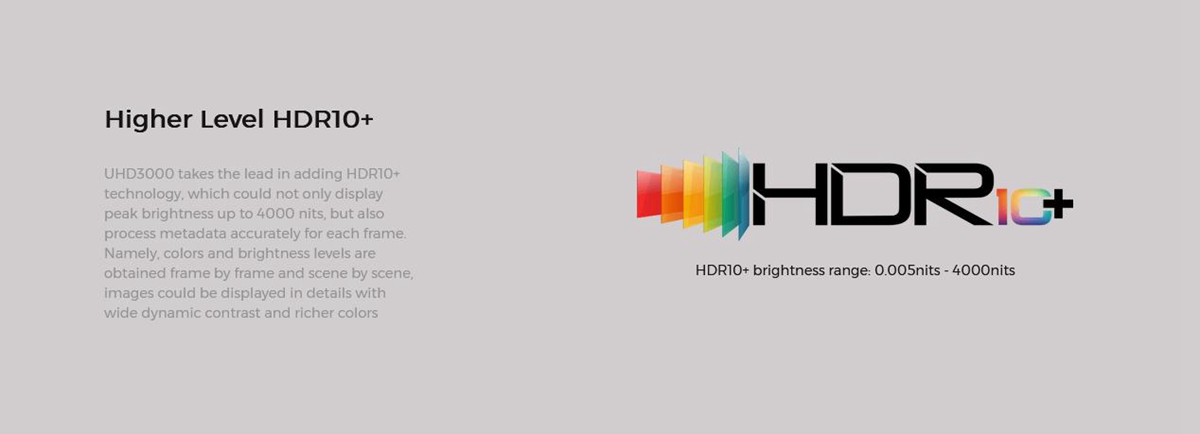 - Supporting acquiring and processing HDR10+ dynamic metadata, colors and brightness are obtained frame by frame and scene by scene.