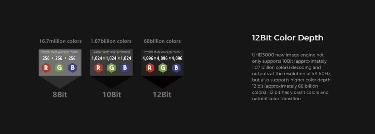 - HDMI 2.0 supports 4K 60Hz point-to-point output, HDR (HDR10/HLG/HDR10+/Dolby Vision), 12Bit, BT.2020 wide color range and YCbCr 4:4:4 color space. Supporting outputting raw three-dimensional multi-channel audio format based on object.