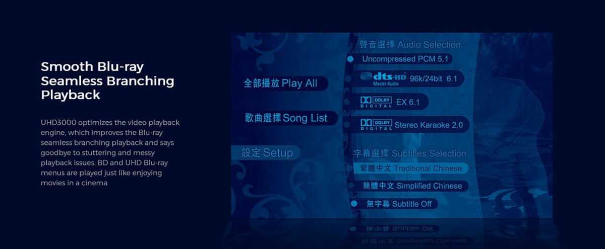 - Complete BD/BD3D/UHD Blu-ray menu playback and Blu-ray seamless branching playback are supported.