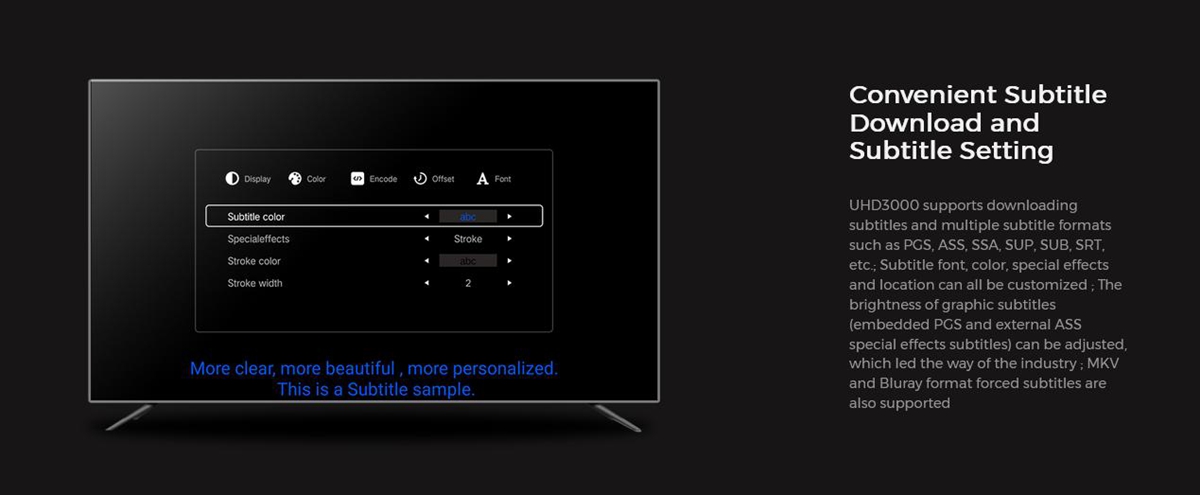- Graphics special effects subtitles are supported and subtitles brightness can be adjusted. Subtitles can be downloaded. ZIDOO is the only one among the field to support BLURAY and MKV forced subtitle.