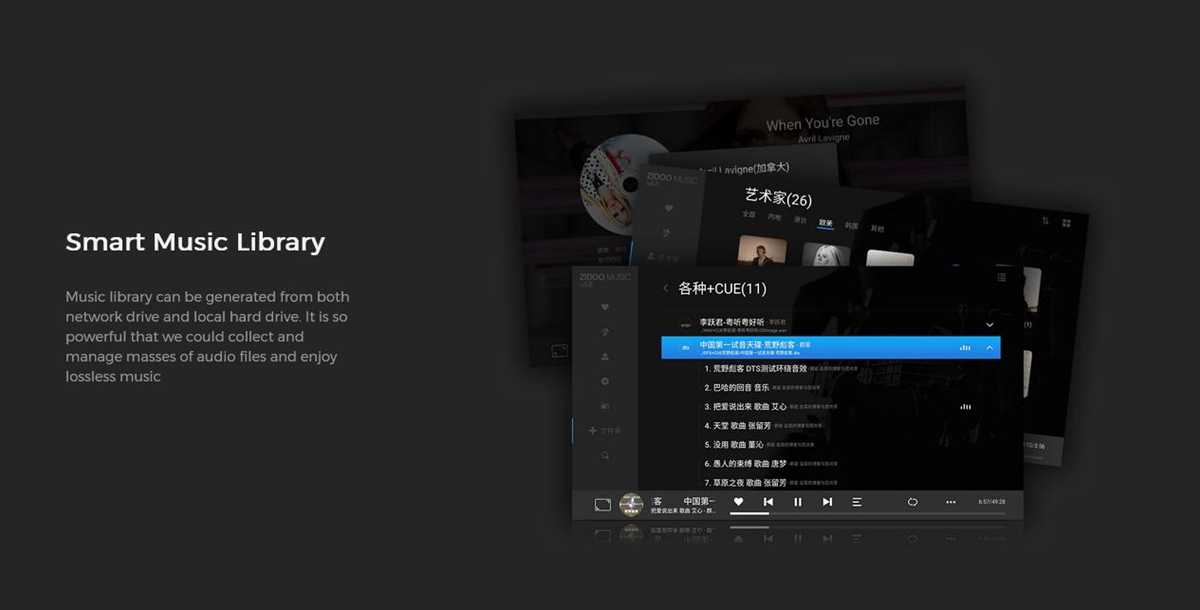 - The newly upgraded version of Music Player supports seamless playback, personalized configuration, associated lyrics and songs matching.