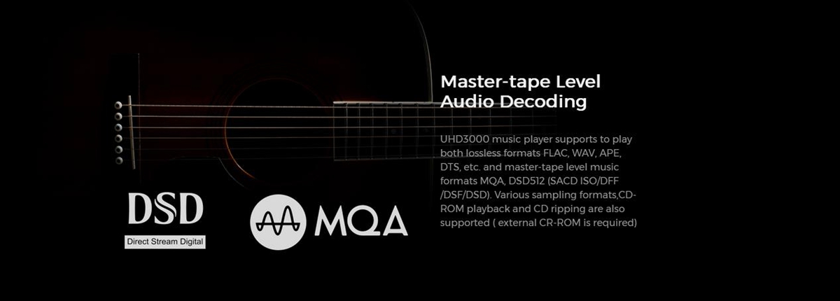 - Supporting MQA, SACD ISO (stereo), DSF, DFF, WAV, FLAC etc. and seamless playback and CUE track.